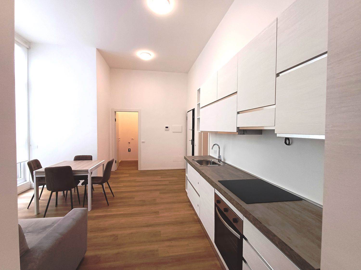 Milan, Via Ripamonti, Vigentino district. In Via Muzio Attendolo Sforza, in a building from the late 90s, we offer for sale a renovated three-room apartment of 75 square meters, composed as follows: Entrance, living room with open kitchen, double bedroom, small bedroom, dressing room with closet and bathroom with shower box. The finishes include a security door, parquet flooring throughout the house. PVC double glazed windows. White lacquered wooden interior doors. Fan coil heating and cooling. Double exposure. Bright and quiet property. The area is well served by public transport such as Tram 24 which reaches the Duomo of Milan in just 20 minutes, and bus 34 under the house reaches the Brenta metro station on the Yellow M3 line. Served by supermarkets, bars, gyms. Well connected to the Milan ring roads, both West and East. Concierge service every day until Saturday morning. Excellent solution for investment use such as Airbnb or student rentals. Annual condominium expenses €1,200. Available immediately. Real bargain. Asking price €230,000 including furniture.
